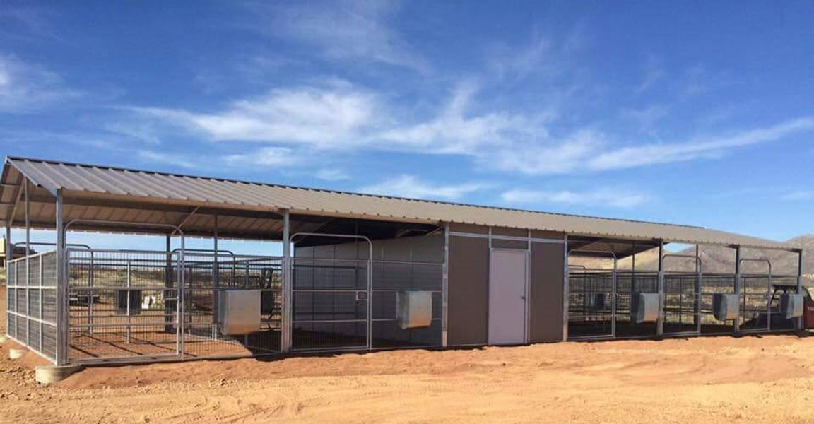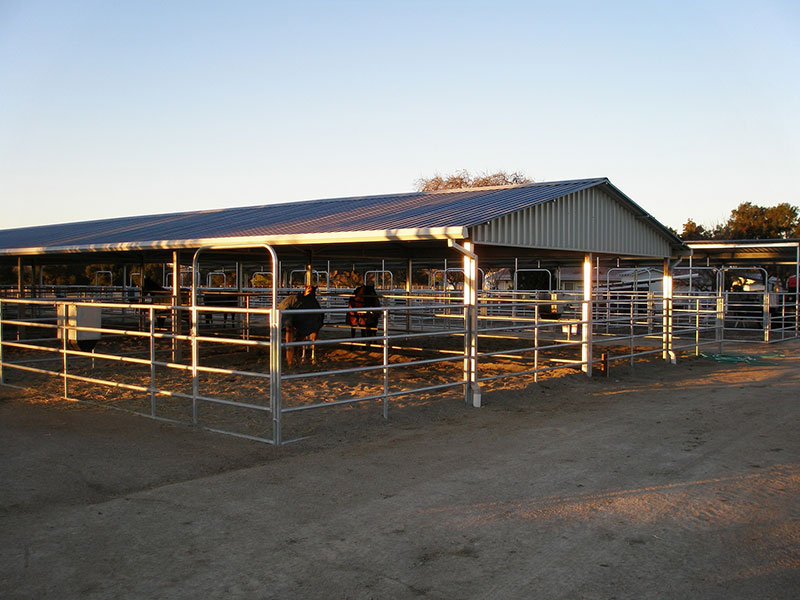 Mare Motels can be designed in a Breezeway or Shedrow configuration and provide optimal ventilation for your horses. The corrals can have partial or full coverage and are available in a variety of sizes. Barn walls can be interchangeable with the pipe panels to suit your specific needs. From large breeding farms to individual users, the Mare Motel is an effective and practical equine housing choice.